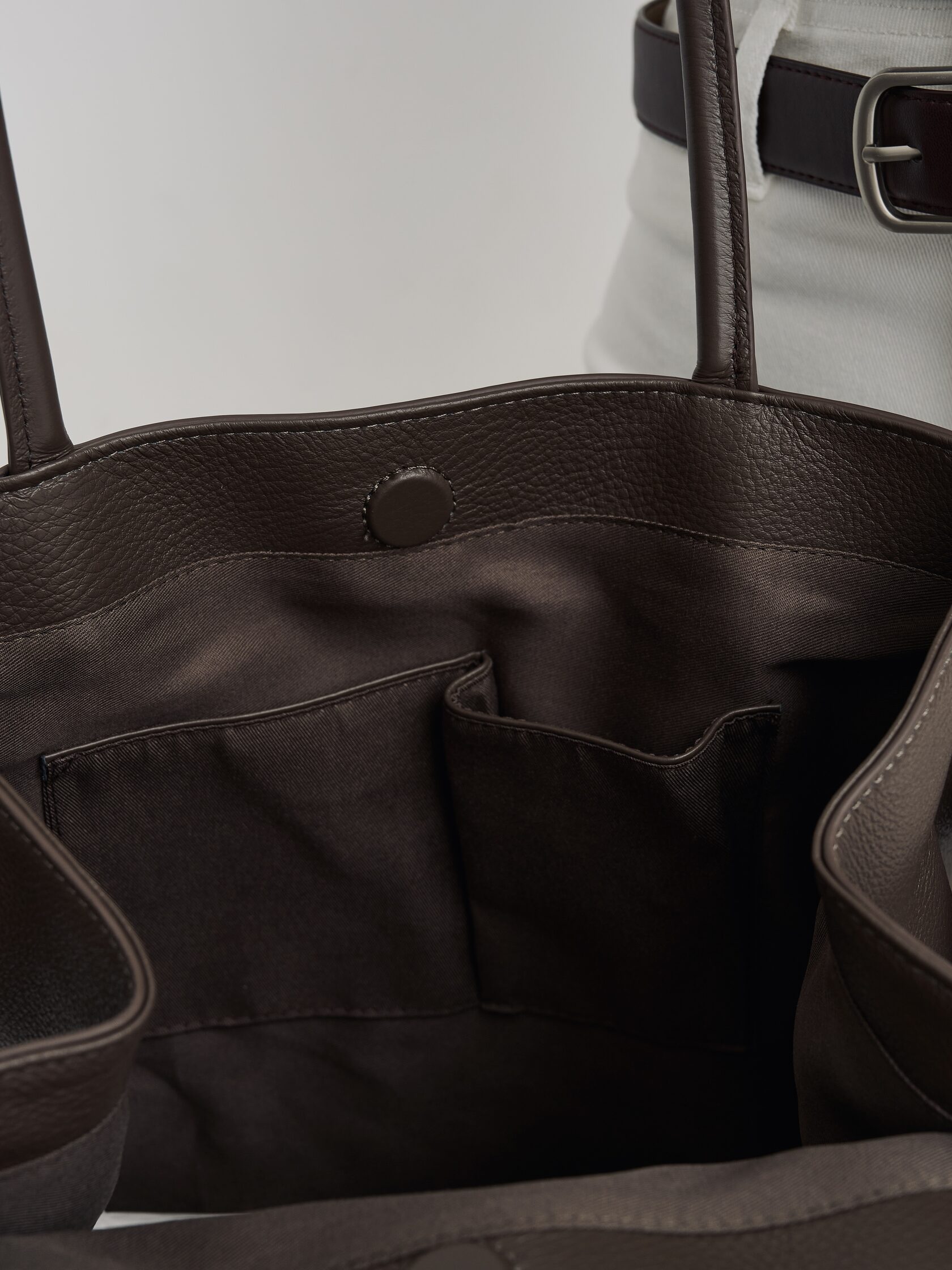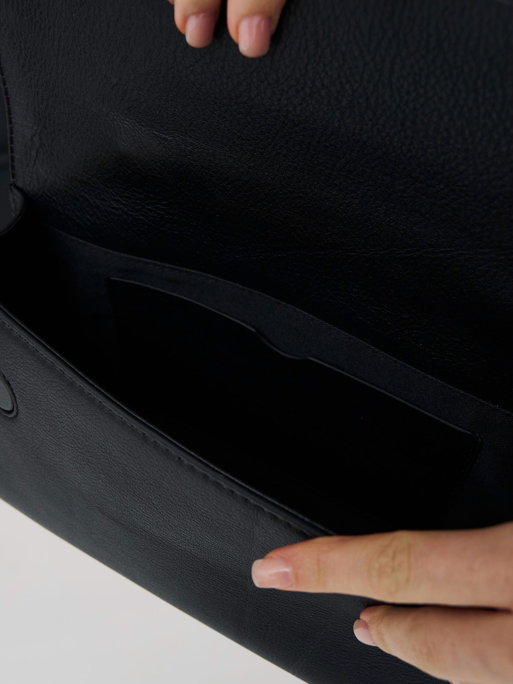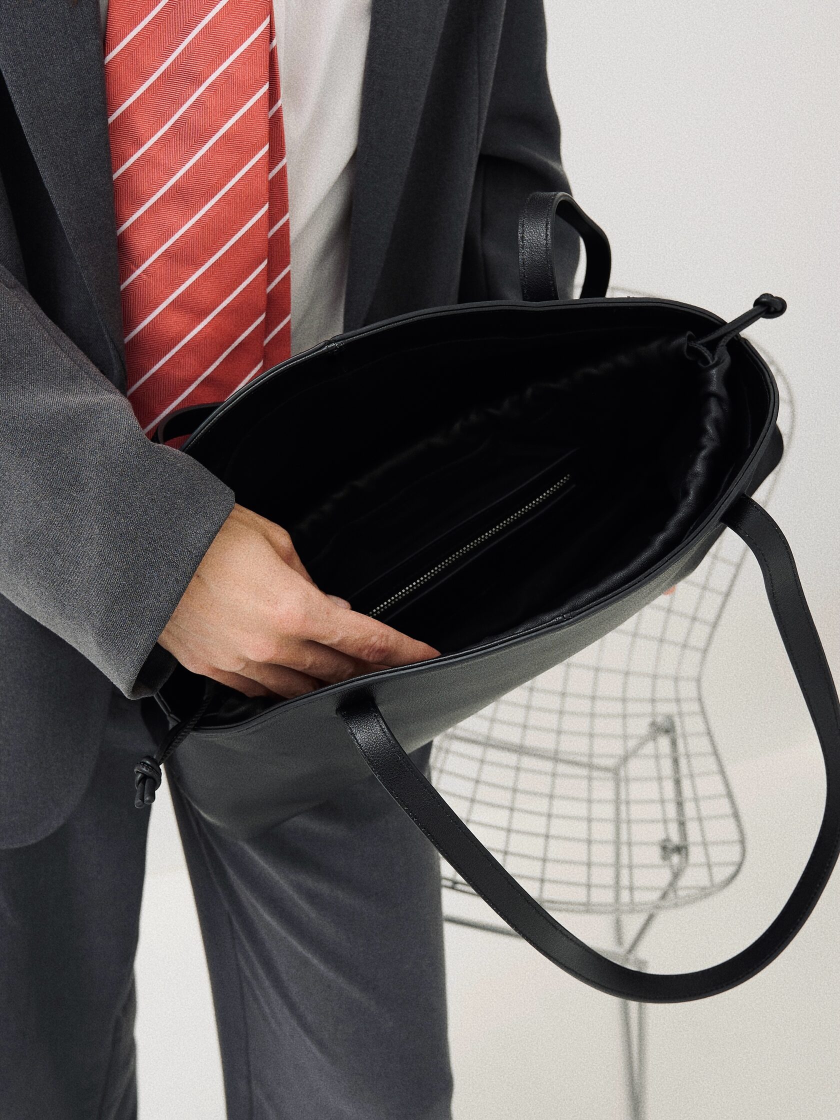 Внутри расположен один карман на молнии и два открытых кармана.